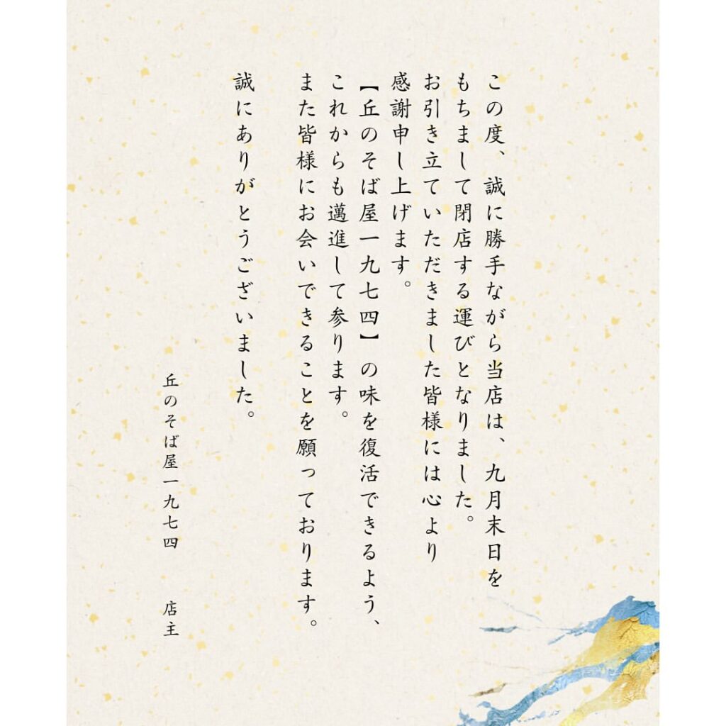 丘のそば屋 一九七四[2025/9/30閉店]