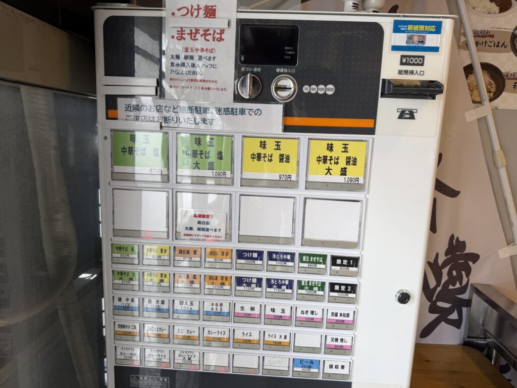 注文は券売機制です。入ってすぐ左側に設置されています。鶏白湯塩900円とちょこっとカレー120円をいただきます。