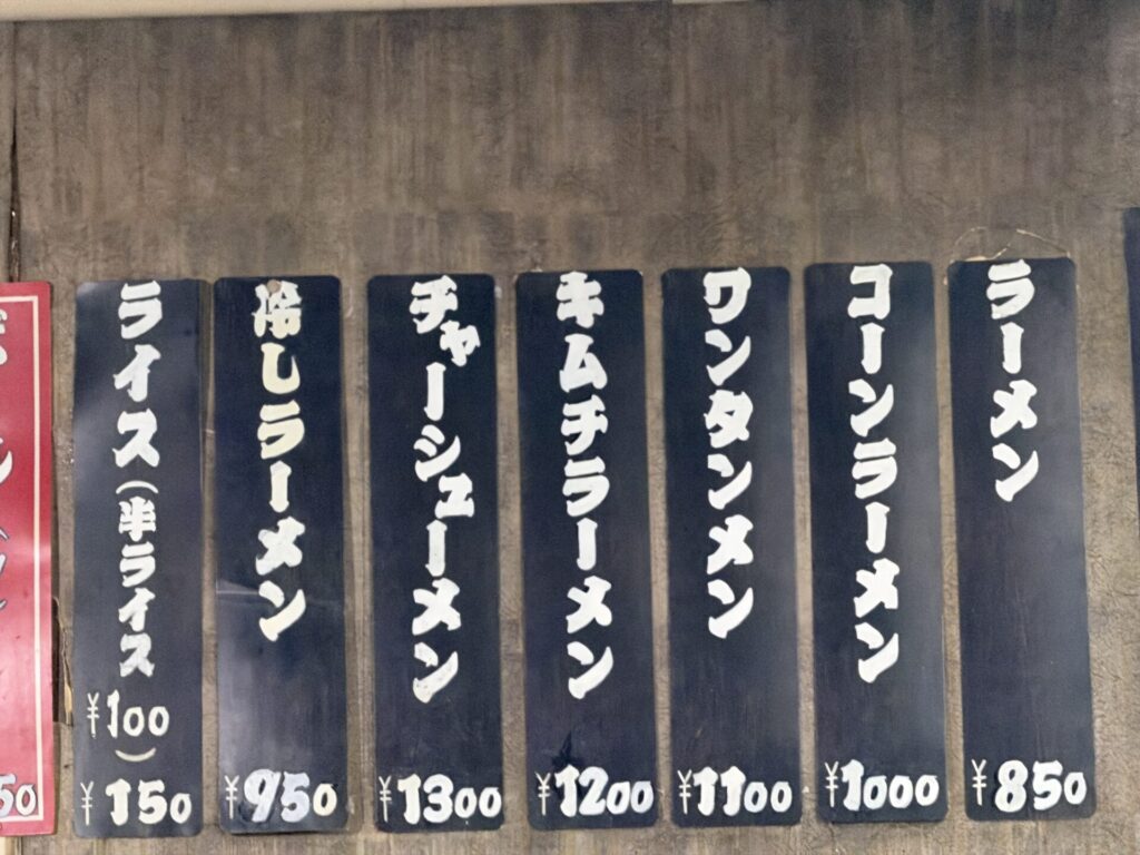 メニューは壁面一箇所のみ。かつては、毎回キムチラーメンをいただいていました。これははっきり記憶あり。それにしても、値上がりしたなぁと言う印象。キムチは、ノーマル+350円とちょっと躊躇します。今回は、未食のはずのワンタンメン1,100円をいただいてみます。