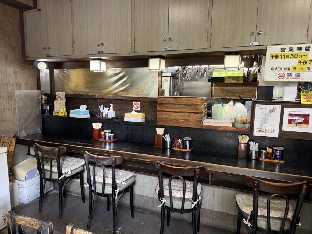 店内は、カウンター4席、6人テーブル2卓、2人テーブル1卓。29年前足繁く通っていた頃も同じレイアウトか、コの字のカウンターレイアウトだったような気もしますが、人間の記憶はかくも曖昧・・・・・・・。2016年に十数年ぶりに一度訪問していますが、その投資背の記憶すら残っていない・・・・・。