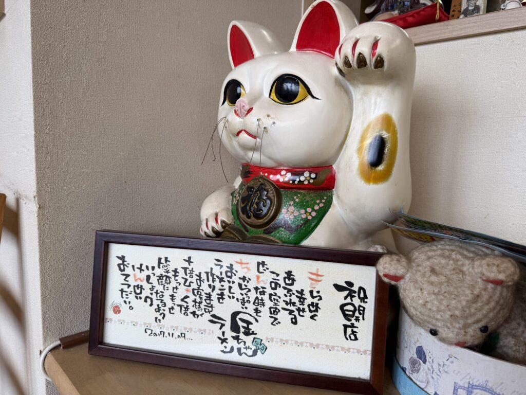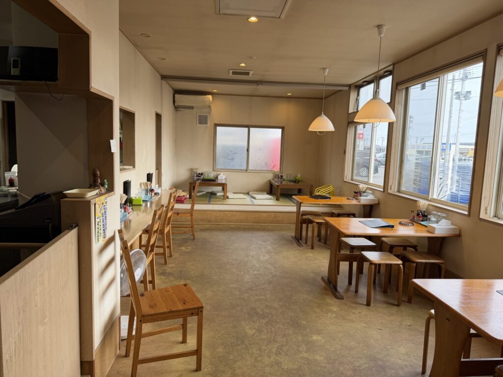 店内は、カウンター3席か4席、4人テーブル3卓、4人座敷2卓と広々としたレイアウトも、朝ラー営業後そのままか昼の部オープン後すぐなのに座布団や椅子が整えられておらずちょっと雑然とした雰囲気。