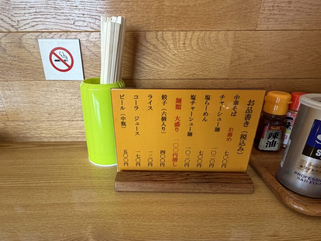 券売機はなく席で注文後払いです。店員さんがお冷を持ってきてくれます。中華そば700円をいただきます。店内には2025年11月4日より20円ほど値上げされた旨の案内掲示あり。これは致し方ないでしょう。今月頭まで600円台で提供されていたのは凄いです。