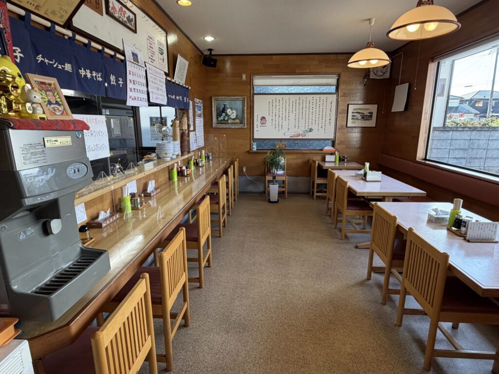 店内はカウンター6席と4人と2人のテーブルが2卓ずつと広々しています。25年以上経っているとは思えないほどきれいです。