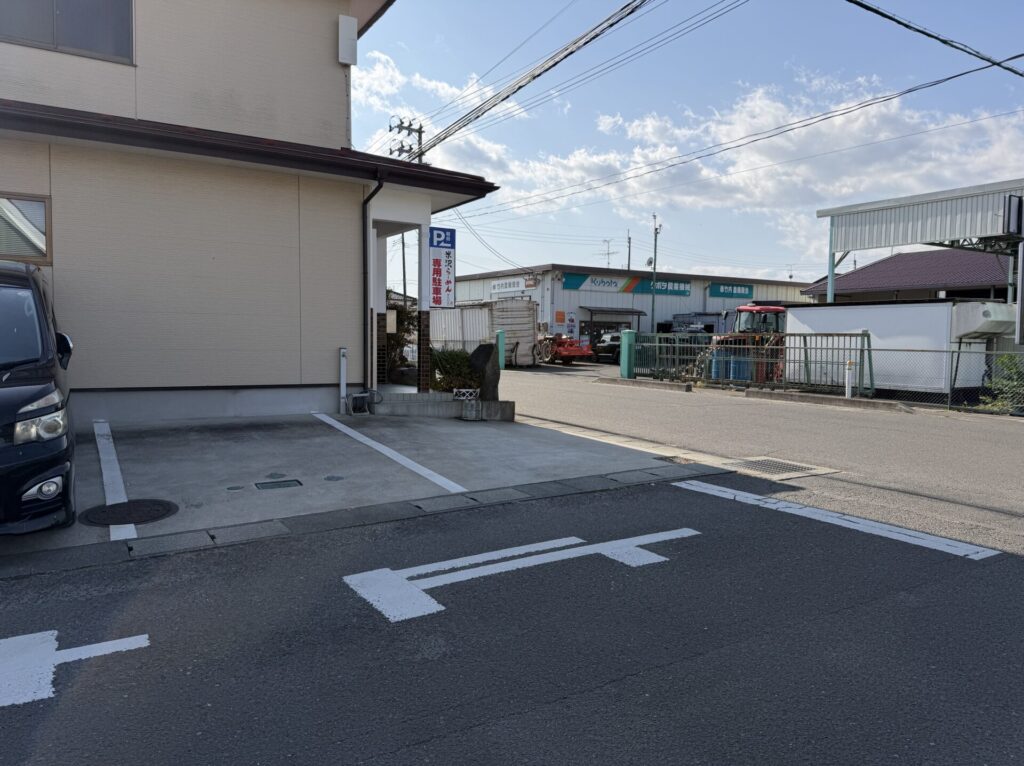 亘理駅から徒歩8分の住宅地内の立地です。駐車場は、店舗前4台と、正面向かって左手の民家を1軒挟んだ交差点角に3台分確保されています。近辺は住宅地も道が広く安心で行きやすいです。