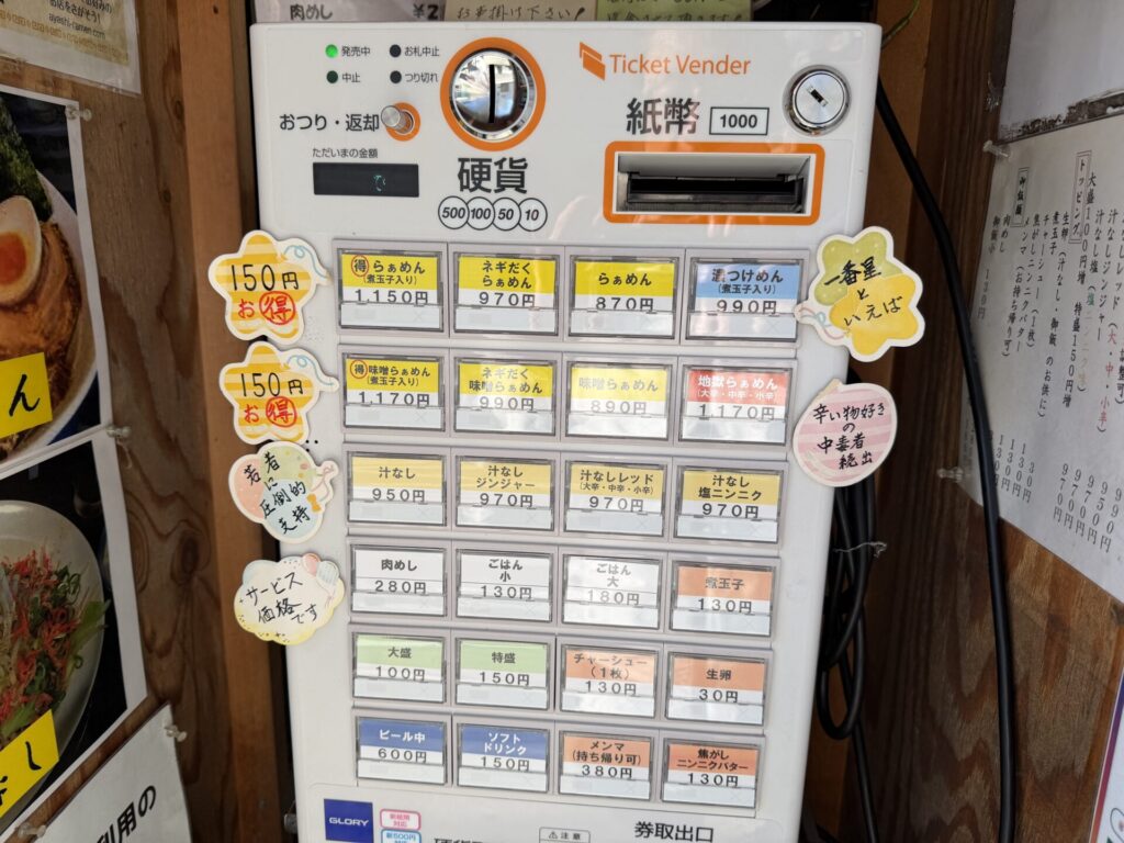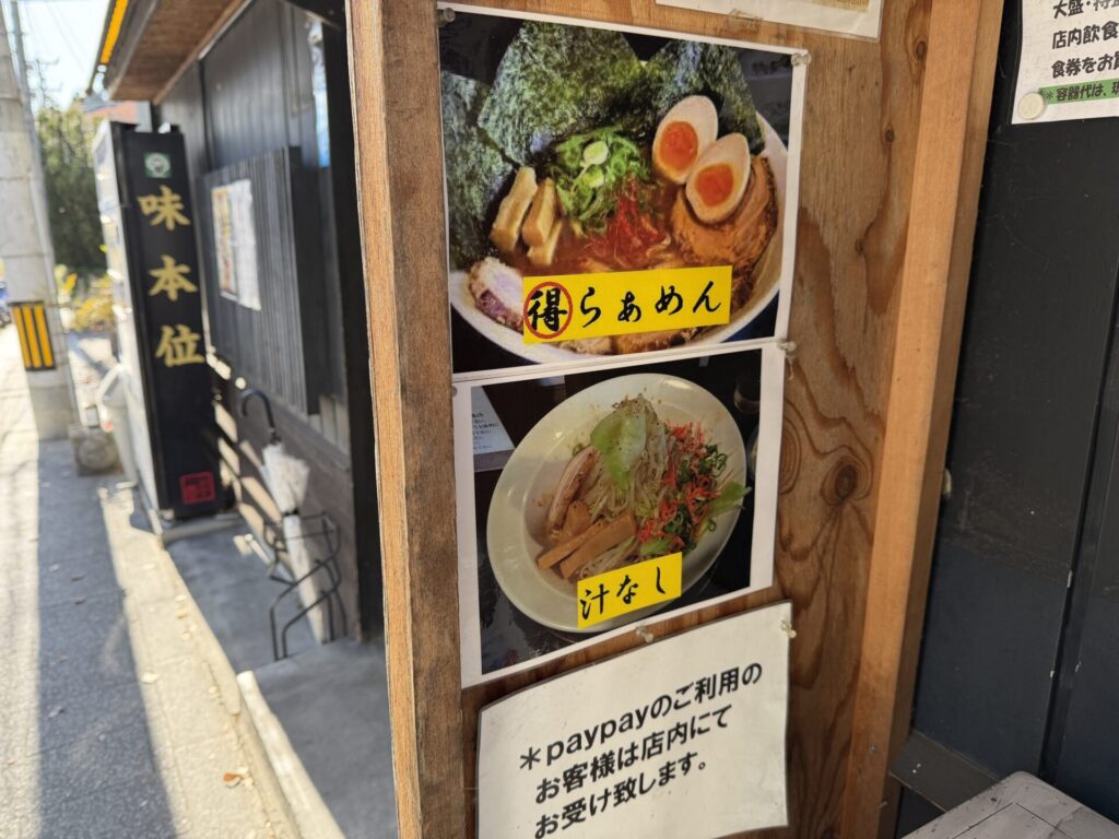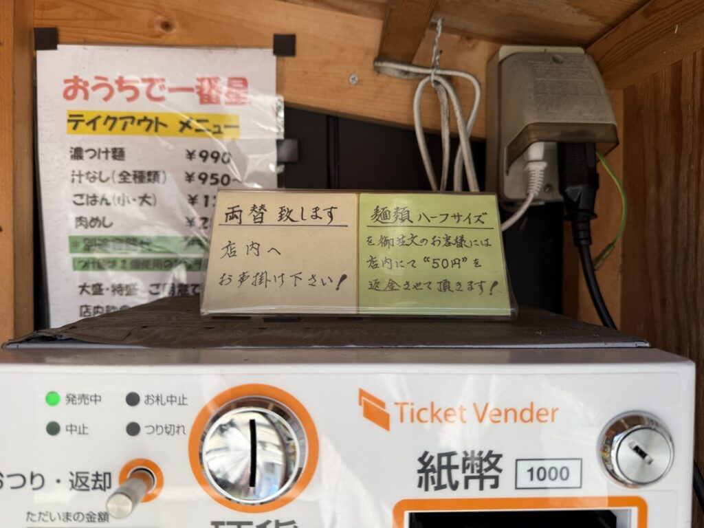 こちらは、店舗外に券売機あり食券買ってから列に並ぶようになっていました。本日は到着時は、券売機はありませんでしたが、開店10分ほど前に設置されました。
