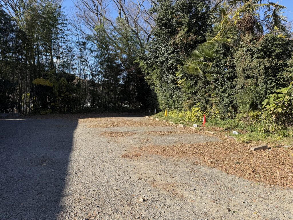 駐車場も店舗横(正面から右手)の共同駐車場の奥側に4台確保されています。広く、コーンで案内されていますが区割りがちょっと見えにくいです。