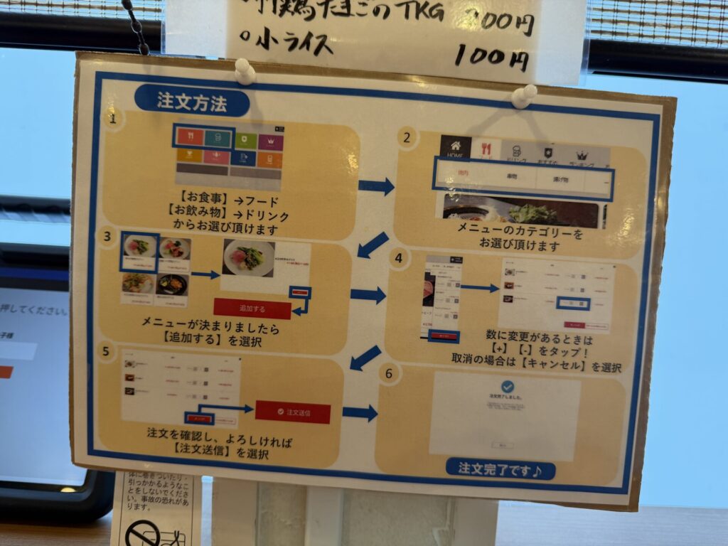 店内のレイアウト変更はないも、各テーブルごとに注文用のタブレットが置かれ、奥のカウンター席数の右端にセルフの精算機が設置されてました。タブレットになっても、席は店員さんに案内いただけるのは変わりなし。相変わらずこちらの接客はとても気持ちいいです。