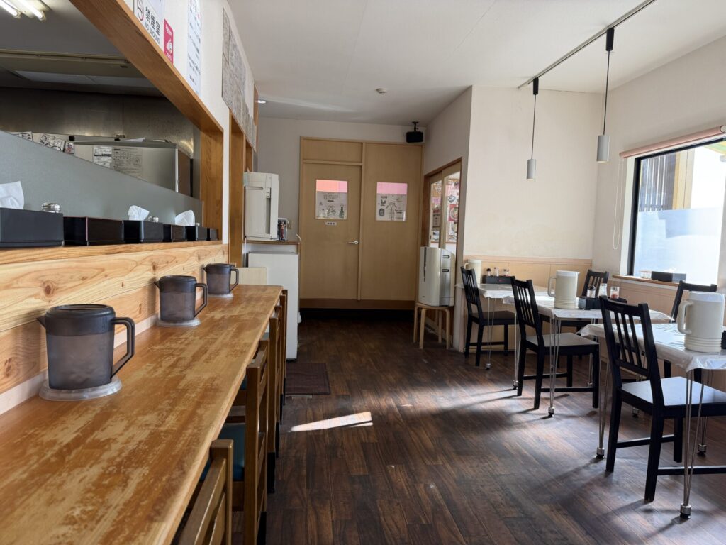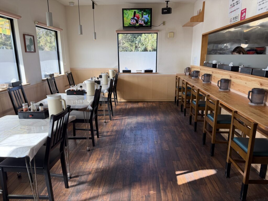 店内は、カウンター5席とテーブル席数席とほぼ駐車台数とおなじキャパです。開店されて10年は経過していますが、綺麗なままです。接客もしっかりしていていつも安心できます。