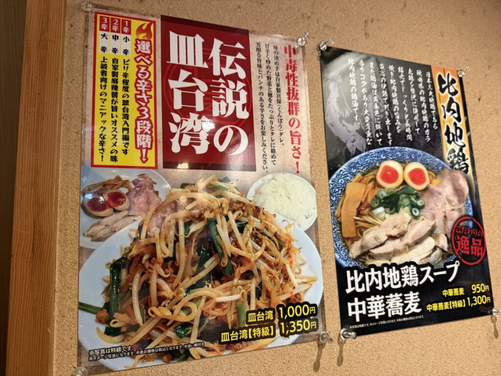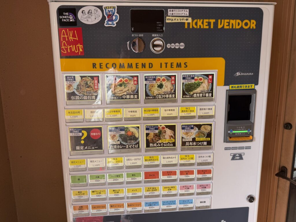 券売機制で入口入ってすぐ左側に設置。結構幅広いメニュー構成でボタンの大きい「特級」とつく全部のせメニューはかなりのお値段です。白い小さいボタンがレギュラーバージョンでそれでもほぼ1,000円超え。昨今の物価と場所柄これは仕方なしか。