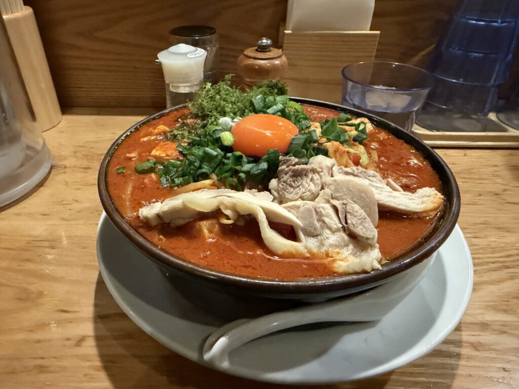 辛さは、大辛だとほぼ本家の蒙古タンメンぐらいで、ブログ主には美味しくいただける限界ギリギリ。熱さもかなり持続するので、両コンボでちょっとつらい感じでした。最近辛さ耐性が落ちてきたようで、お店のおすすめであることが多い「中辛」以上頼まないこと(TO自分)。辛さは店やメニューによってまちまちで初見だと本当に加減が難しい。