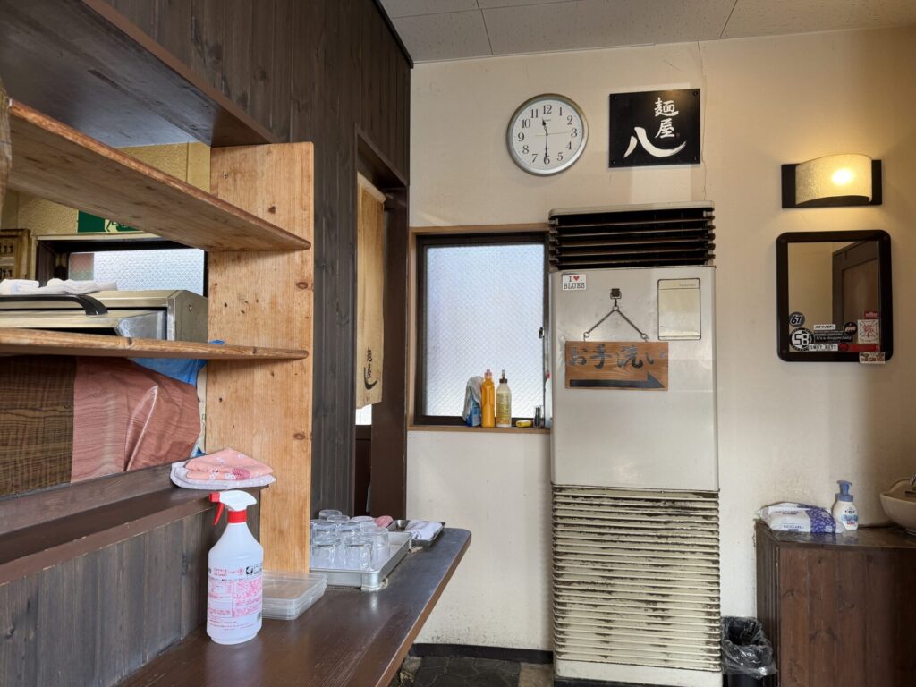 待合室前には、味噌と醤油の年季の入った説明書きが。濃くて辛い八さんのラーメン、やはり定期的に食べたくなってしまう魔力があります。ごちそうさまでした!