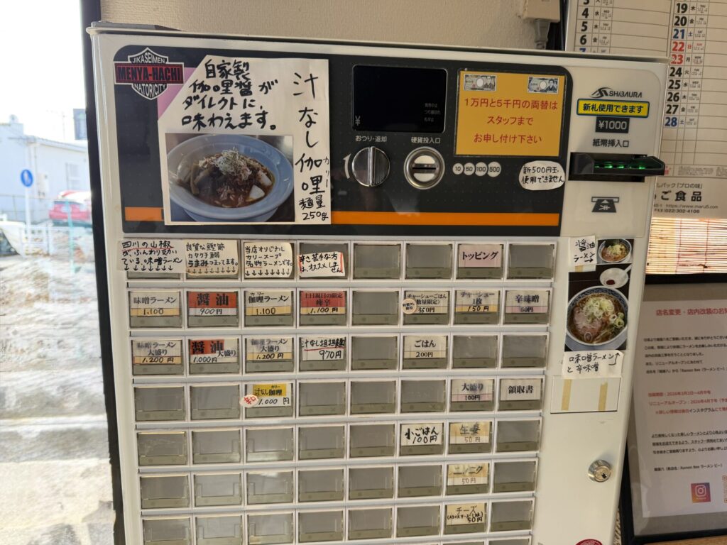 名取市の八さんを定期通院帰りに訪問しました。汁なし咖喱の新メニューが提供されているとの情報を得たからです。平日の11時40分着で、駐車場空き1台。店内はちょうど満席でした。名前を書いて待合室で待ちます。現在のメニューです。昨年度より30円ほど値上がりしています。