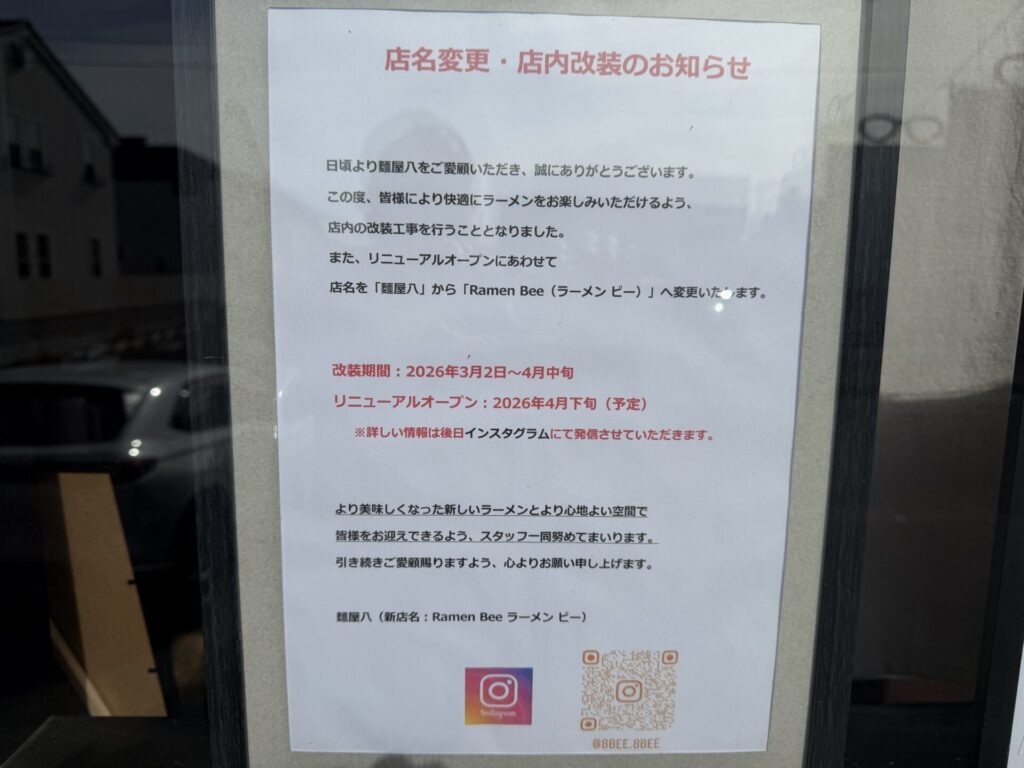 新店名は、Eightではないものの、Beeと八さんとの連続性を想起させられ、楽しみです。