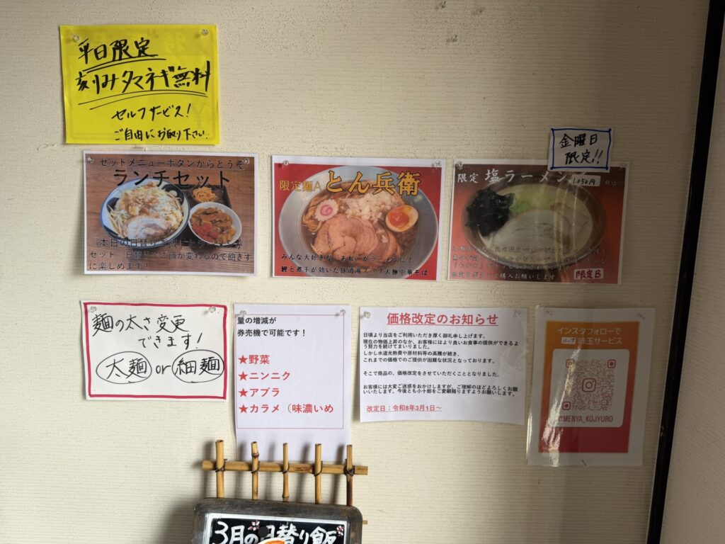 お値段高めに感じましたが、各種無料サービス込みで考えると、これはありと思いました。名取店の塩もそうでしたが、二郎系に一要素加えたメニューは新鮮で面白いです。やはりいいお店だと再認識、次は味噌目的に再訪せねば。本日はごちそうさまでした!!!