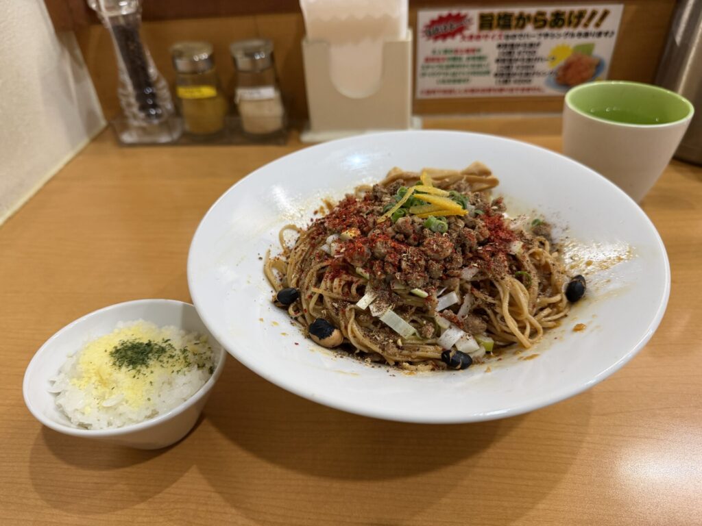 麺量並ゆえ、見た目が寂しい感じですが、量的には十分です。またご飯も減らしてもらったのでサイドメニューもさらに寂し目もこちらもブログ主には十分です。
