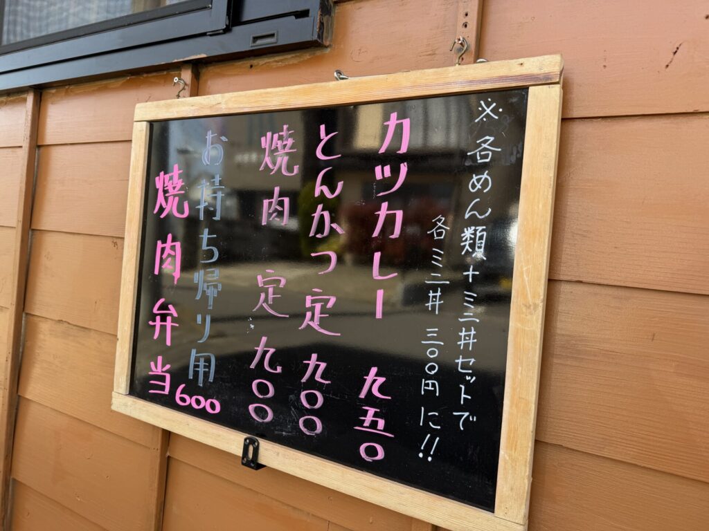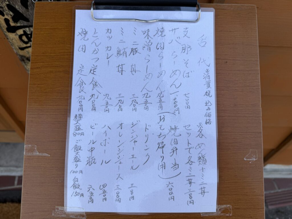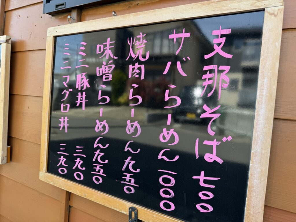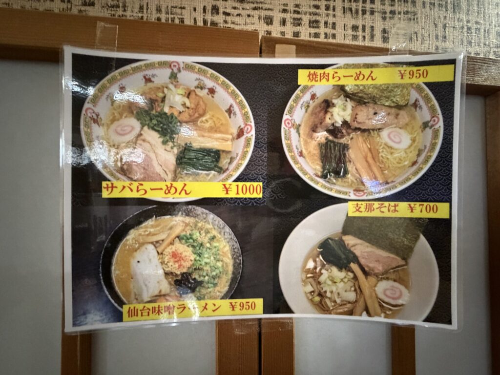 店舗内外に写真やメニューが有り。26年3月頃のネット情報だとメニューにサバ出汁使用と明記あったのが訪問時にはなくなっていました。その代わりにイカらーめんがなくなりサバらーめんになってました。サバ出汁目的だったため鯖出汁ではなくなったのか、サバらーめんにすべきか迷ったものの、写真を見ると違いは具材だけかなと、予定通り、支那そば700円とミニ鮪丼セット300円にします。券売機ではなく席で注文、後払いです。