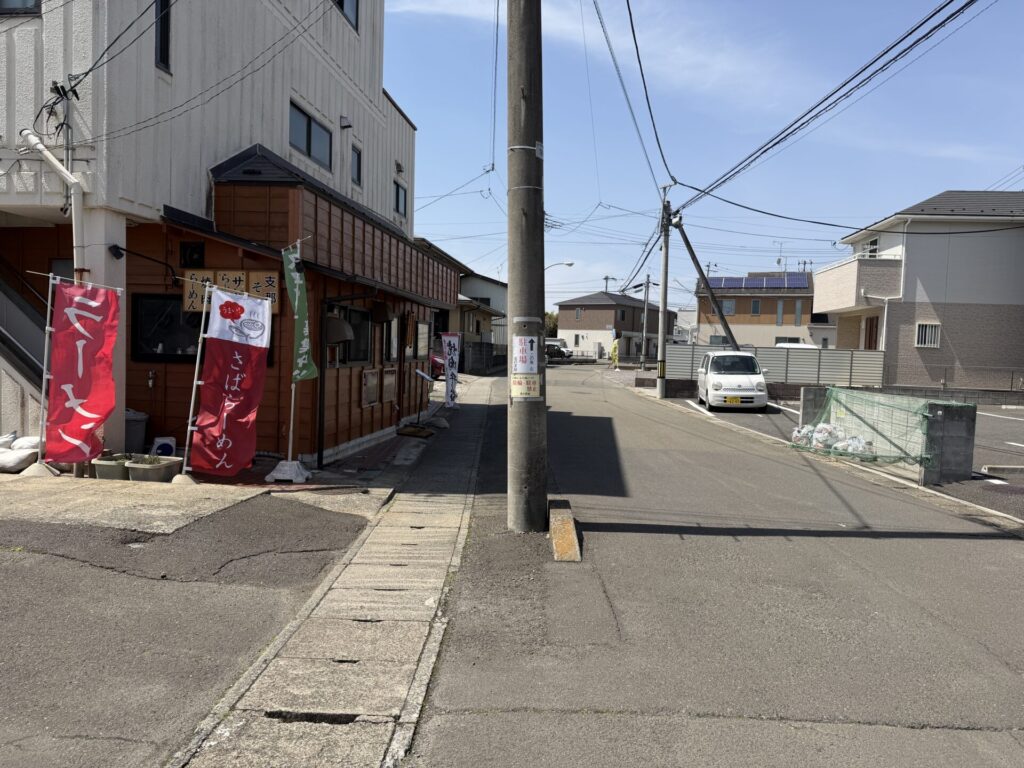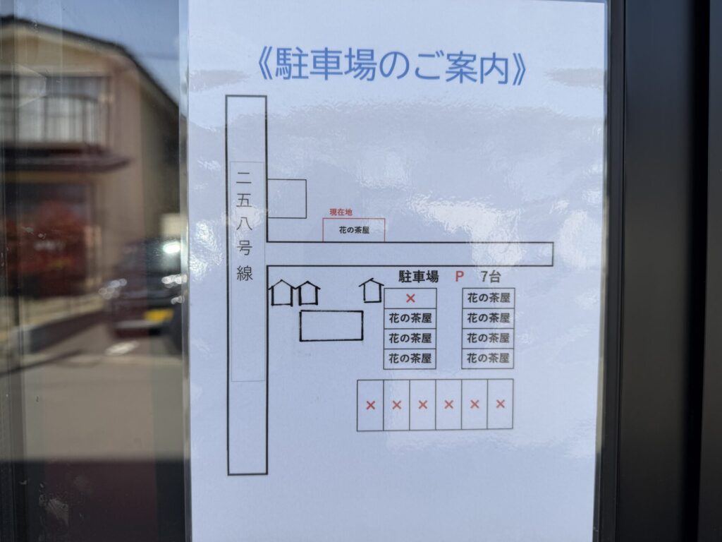 駐車場は、我心さんや以前の店舗と同じ場所で、店舗前を通り過ぎて右側の共用駐車場内指定場所7台です。右折レーンある信号交差点のため、仙台方面、岩沼方面どらからも、258号から直接進入可能、広くて駐めやすいです。